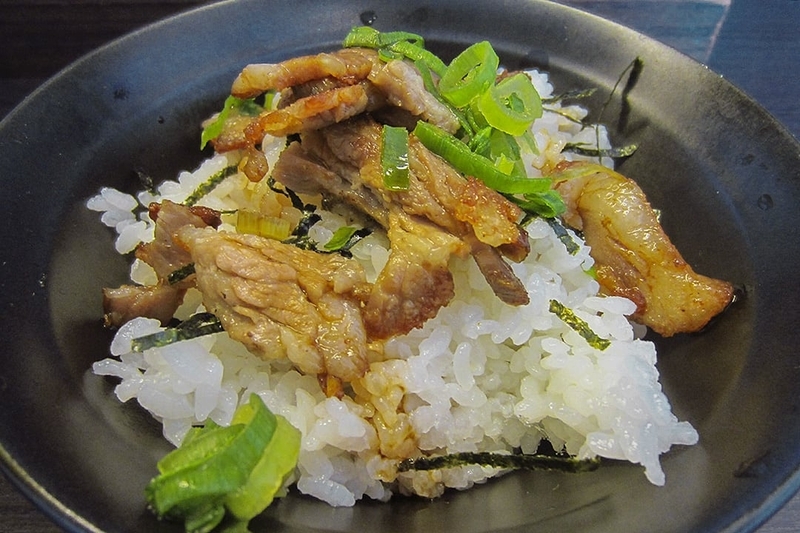トッピングは、こってりレア叉焼・あっさりロール叉焼の二種で飽きないように工夫がされており、煮玉子・極太シナチクも良い完成度で、白髪ネギ・刻みネギ・海苔・七味と名を打つ黒胡椒風味の香辛料も、トータル的に一本筋が通っている気がする。ただし、身体が冷え込んでいたので、スープのぬるいことは大幅に減点材料になったし、値段設定が高過ぎてラーメンの域を超えているように感じた。〆飯の「チャーシュー丼/350円」もついでにご紹介。
