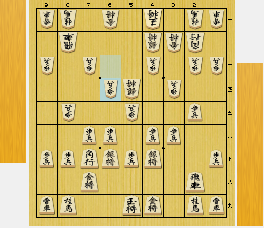 35歩と突き捨ててから2筋の歩交換すると、後手は銀取りを防ぐために44歩か52飛。先手は58金,26飛,37桂,69玉と駒組みを進めていく。