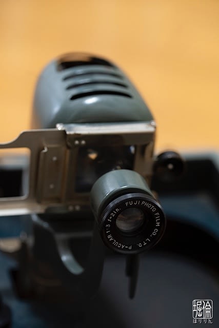 スライドをカシャンと手動で動かして次のポジフルムをセット。