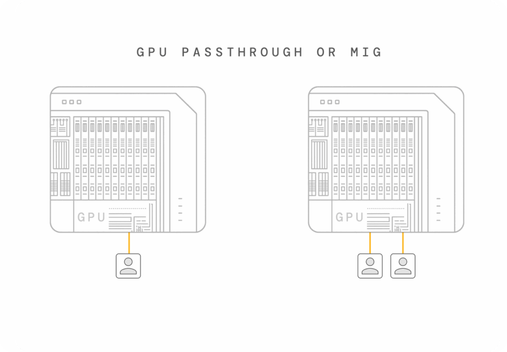 With full software-defined GPU, you can oversell GPU resources for much higher revenue and margin per card versus GPU passthrough.