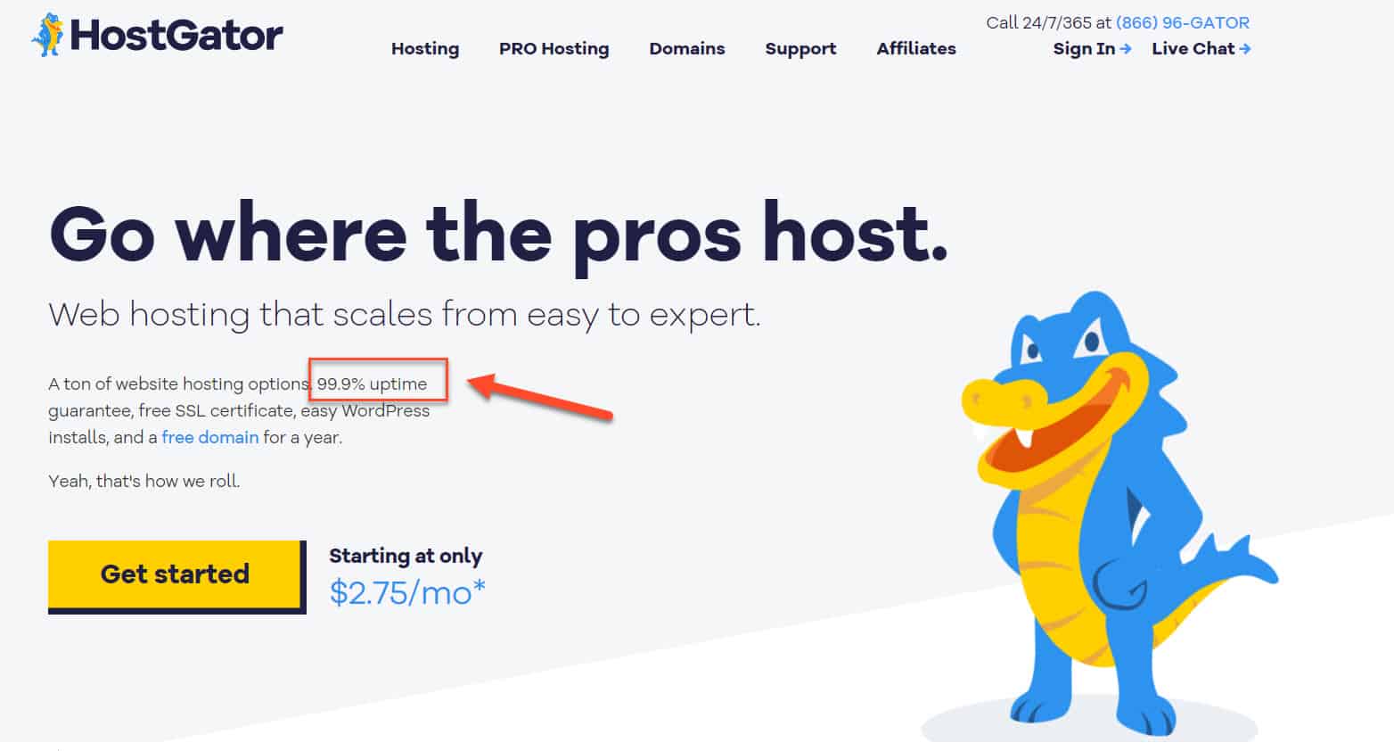 Hostgator, for example, promises 99.9% uptime, meaning the site won’t be down for more than 43 minutes every month.