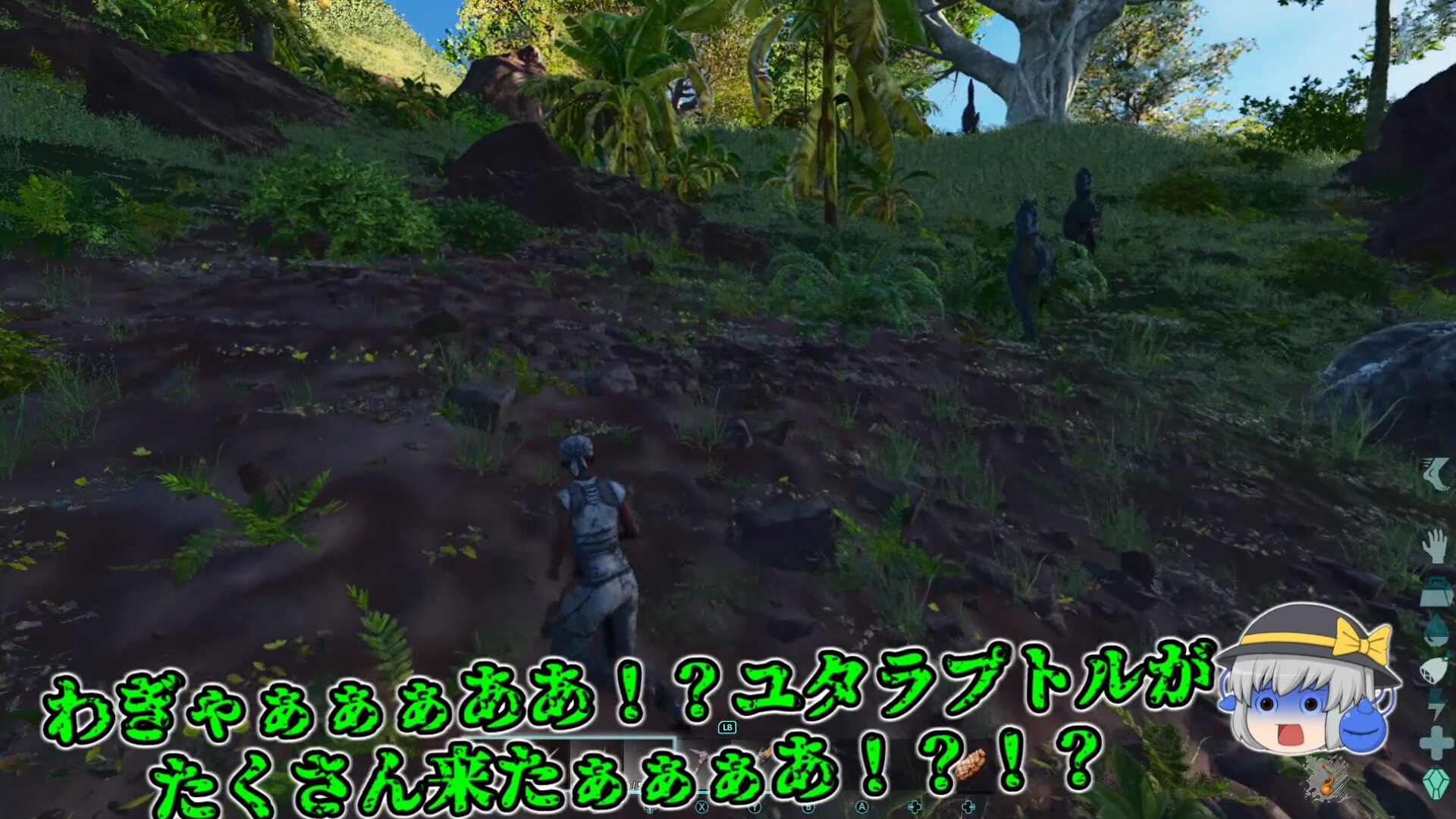 無意識ゲーム録へようこそ!今回はARKにおいて初心者キラーとして名高いトラウマ恐竜『ユタラプトル』に初期の段階で出会ってしまった時の撃退方法をお伝えします!