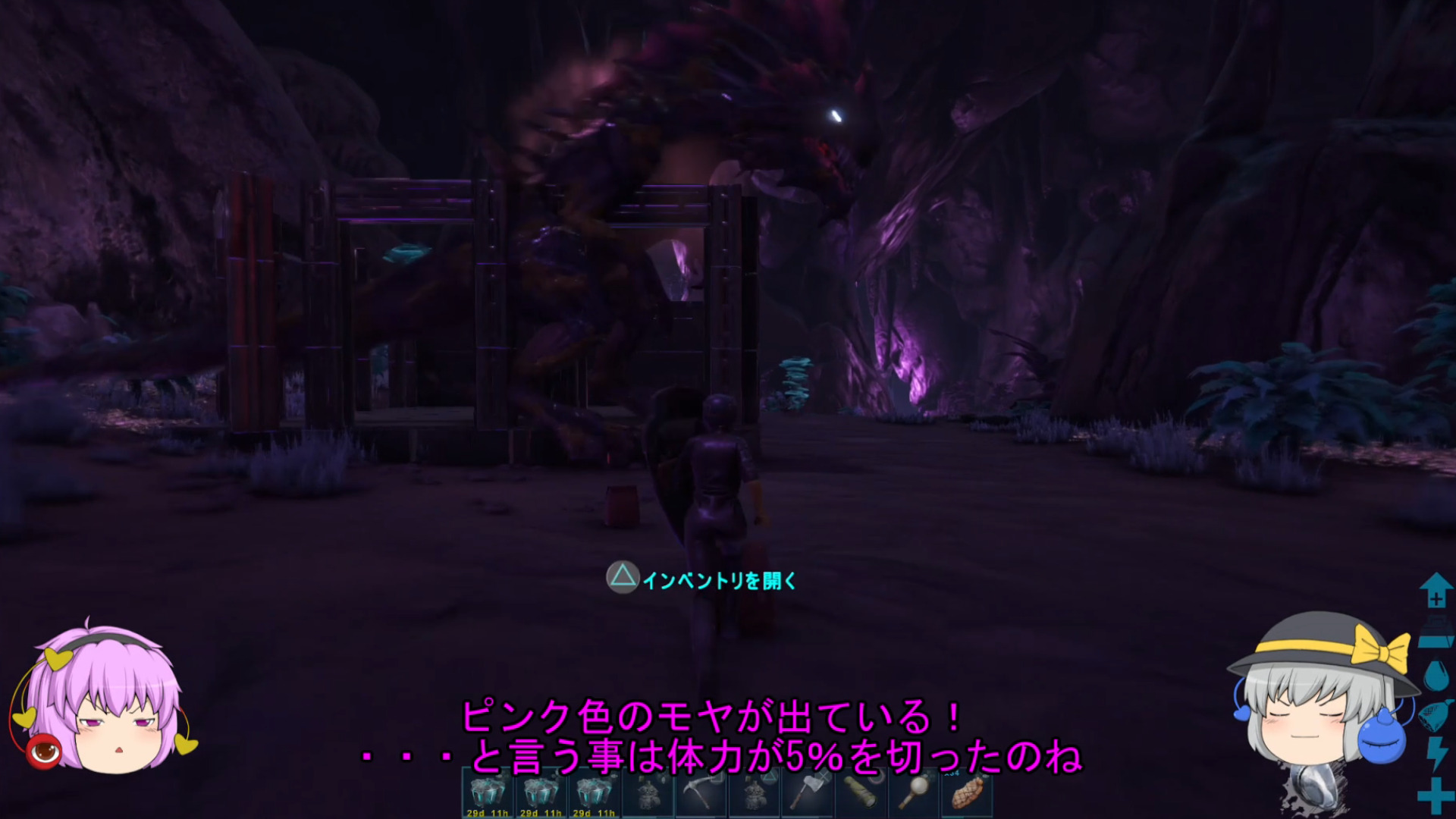 ただし、お腹に植え付けられた赤ちゃんに関してはサバイバーがピチュっても問題ないけれど、放射能のダメージを直接受けてしまうと妊娠がリセットされてしまうから、下層でテイムをするよりも中層まで誘導してトラップに閉じ込めてから体力を減らすことをおすすめします!
