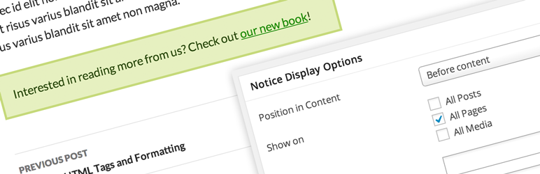 - Added ability to display notices on posts with specific tags