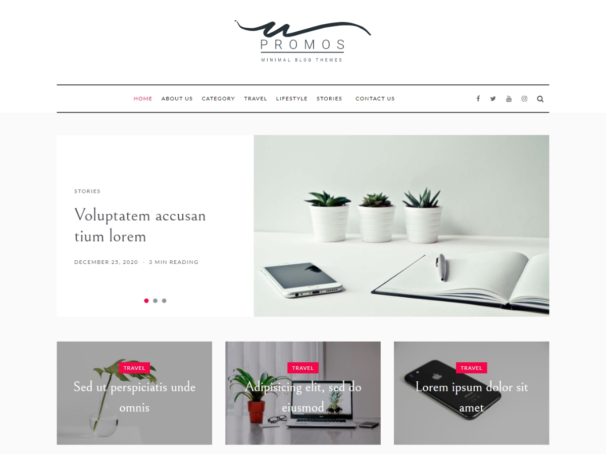 Promos is a theme for blog. It is a free feminine WordPress theme with tons of settings and useful sections. This theme is the awesome and minimal theme. This theme has search option, off-canvas sidebar, multiple sidebar options, footer options, featured slider, promo boxed, footer widgets and many more. Besides that, this theme comes with added custom widgets for author information, featured posts, social icons, etc. It comes with primary color option to change the whole site color with a single click. https://templatesell.net/demo/promos/
