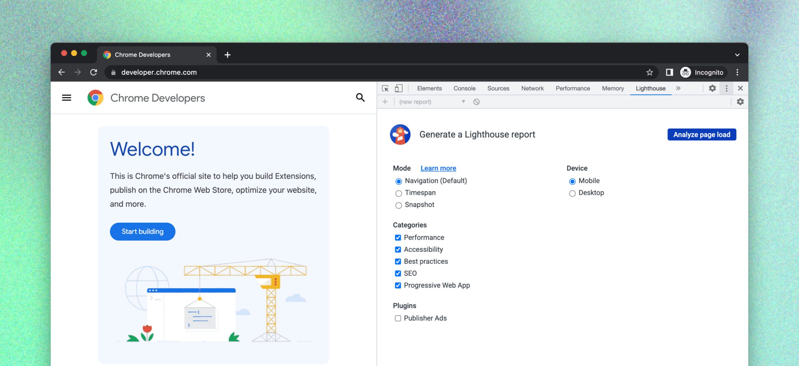 - Lighthouse built into Chrome DevTools