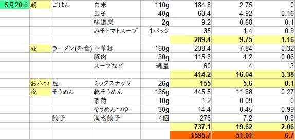 p.s. 小麦が多い一日、たんぱく質、塩分もまずまず。