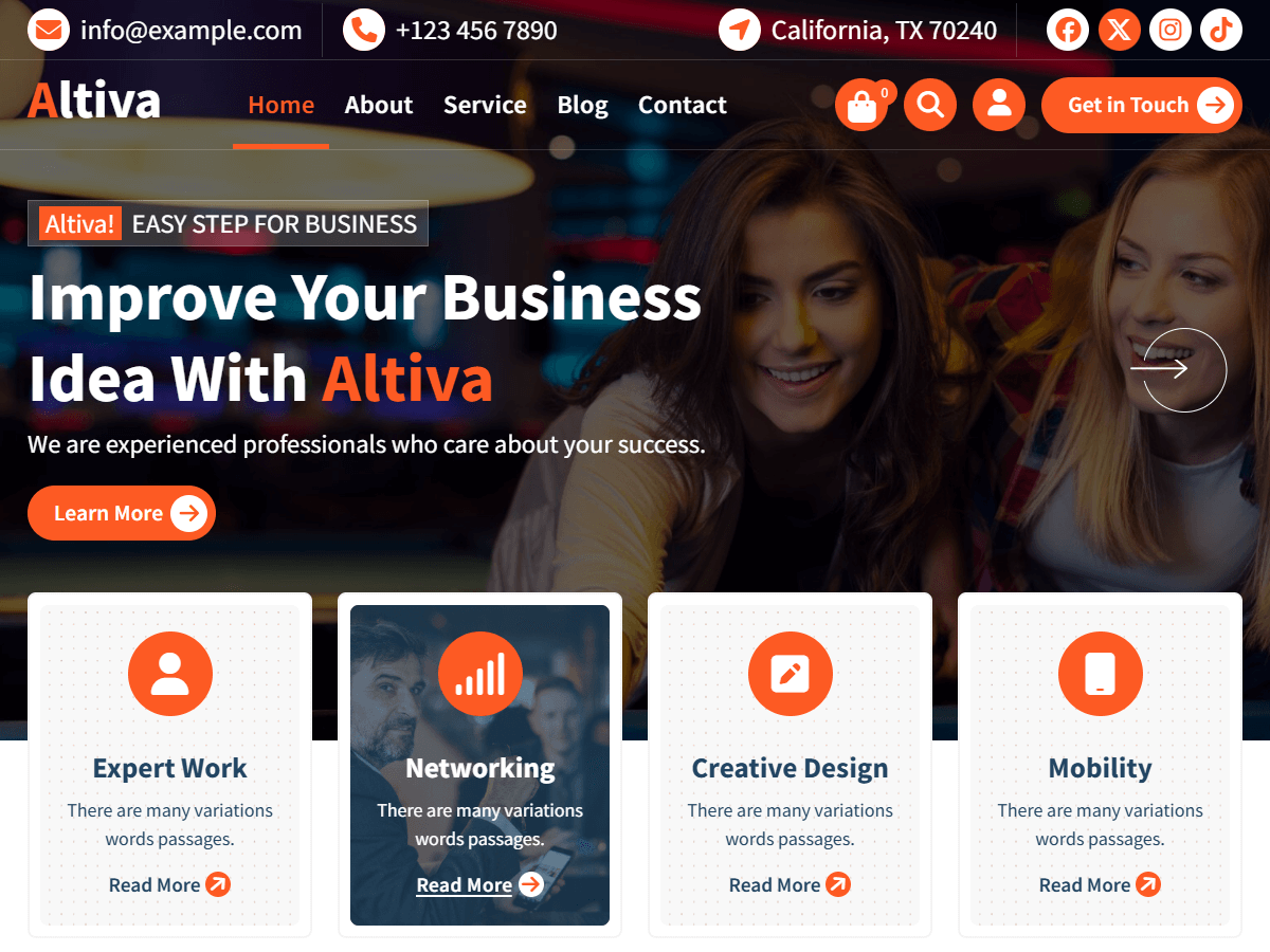 Lightning Fast Speed & Responsive Theme. Altiva is a responsive and fully customizable theme to create any kind of websites. The advanced admin panel will enable you to customize it without any technical knowledge. This theme is lightweight, it will enable you to create almost any type of website such a blog, portfolio, acting and shooting industry, total trendy news, newspaper, mega magazine, fashion, dark themes, petcare, animals wildlife, wooden architecture, plumbing contractor, painting estate, interior design, rooms furniture, home decoration, green floral nature, construction, corporate, multiple agency, business promotion, dark variation, industries, Beauty & spa salons, photography, gym, fitness, health, medical, startups, business agencies, law firms, travel, NGO, charity, yoga, kids education, training institute, university portal, restaurant, meta shop, quick magazines, mutual fund, finance, accounting, consulting ,travel agency website. Theme is fully compatible with popular WordPress plugins like Elementor Page Builder, Slider, Carousal, Beaver Builder, Brizy, Visual Composer, Divi, SiteOrigin, Gutenberg, Block-Enabled, WooCommerce, WPML, Yoast SEO, Shortcode, Jetpack, Contact Form 7, Mailchimp for WordPress, bbPress, Demo Importer, WPForms and more. Your WordPress website will never be let down with this theme. View the demo of Altiva Pro https://demo.themesdaddy.com/altiva-pro/