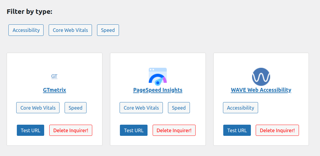 - Add or remove websites to use for tests (Inquirers).