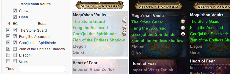 raids.jsonand put it in/wp-content/themes/<your_theme>/wowprogress/folder. Add your custom raid and expansion images to/wp-content/themes/<your_theme>/wowprogress/images/(expansions toexpfolder, raids toraids). This should do it. Don’t forget to activate your raids both in settings and in widget.