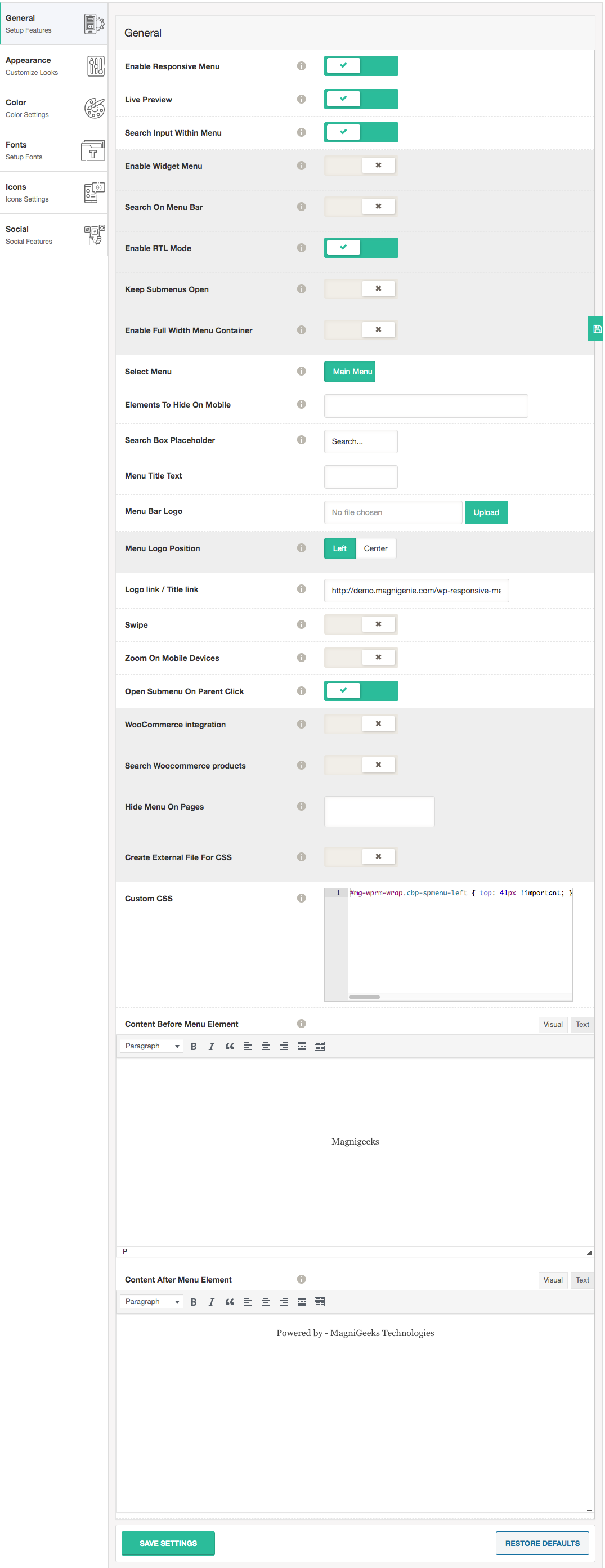 - Added WYSIWYG editor for before menu content and after menu content