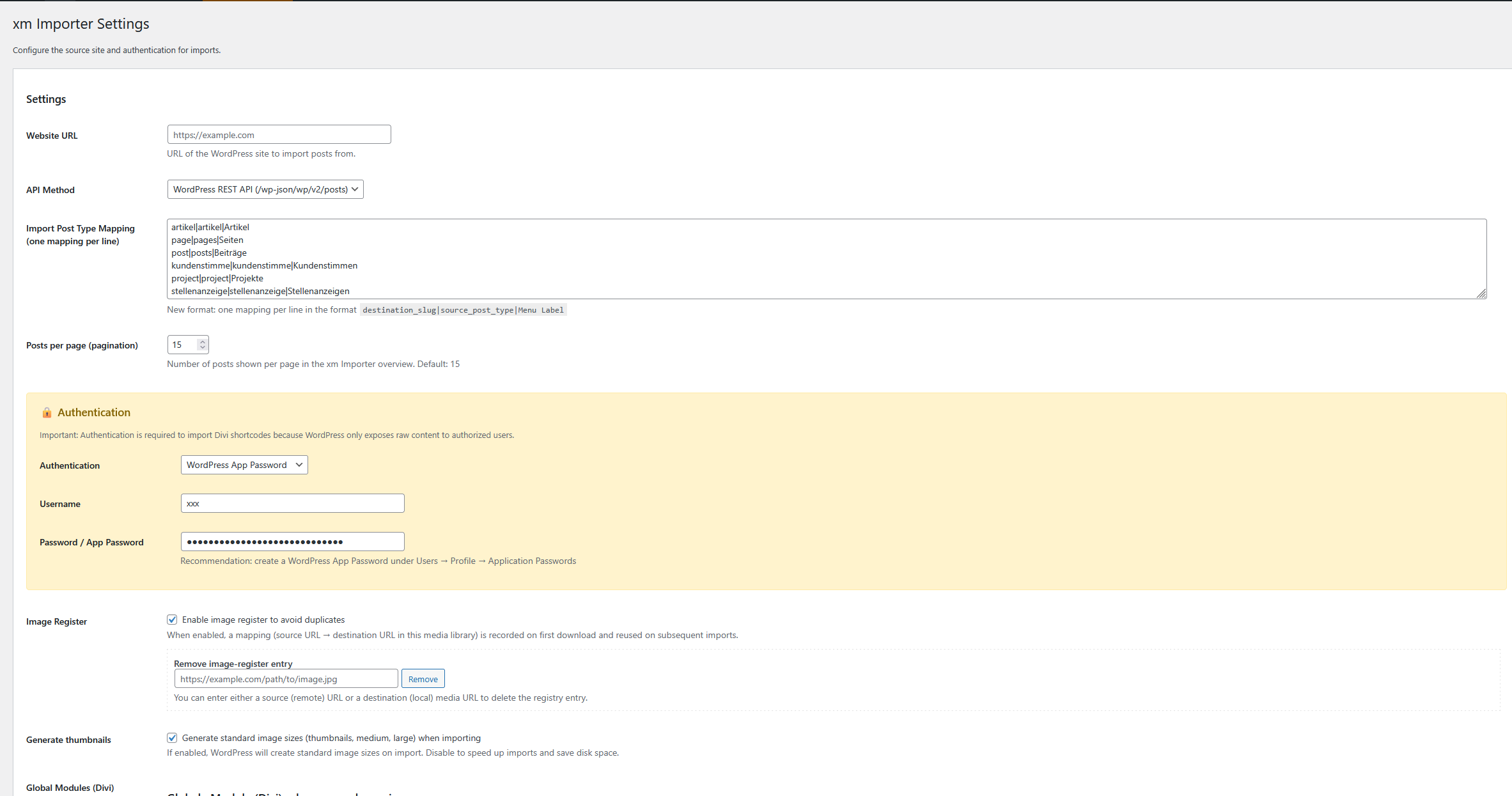 11. In the field Authentication, use “WordPress App Password” – Currently othe Methods are not recommended.