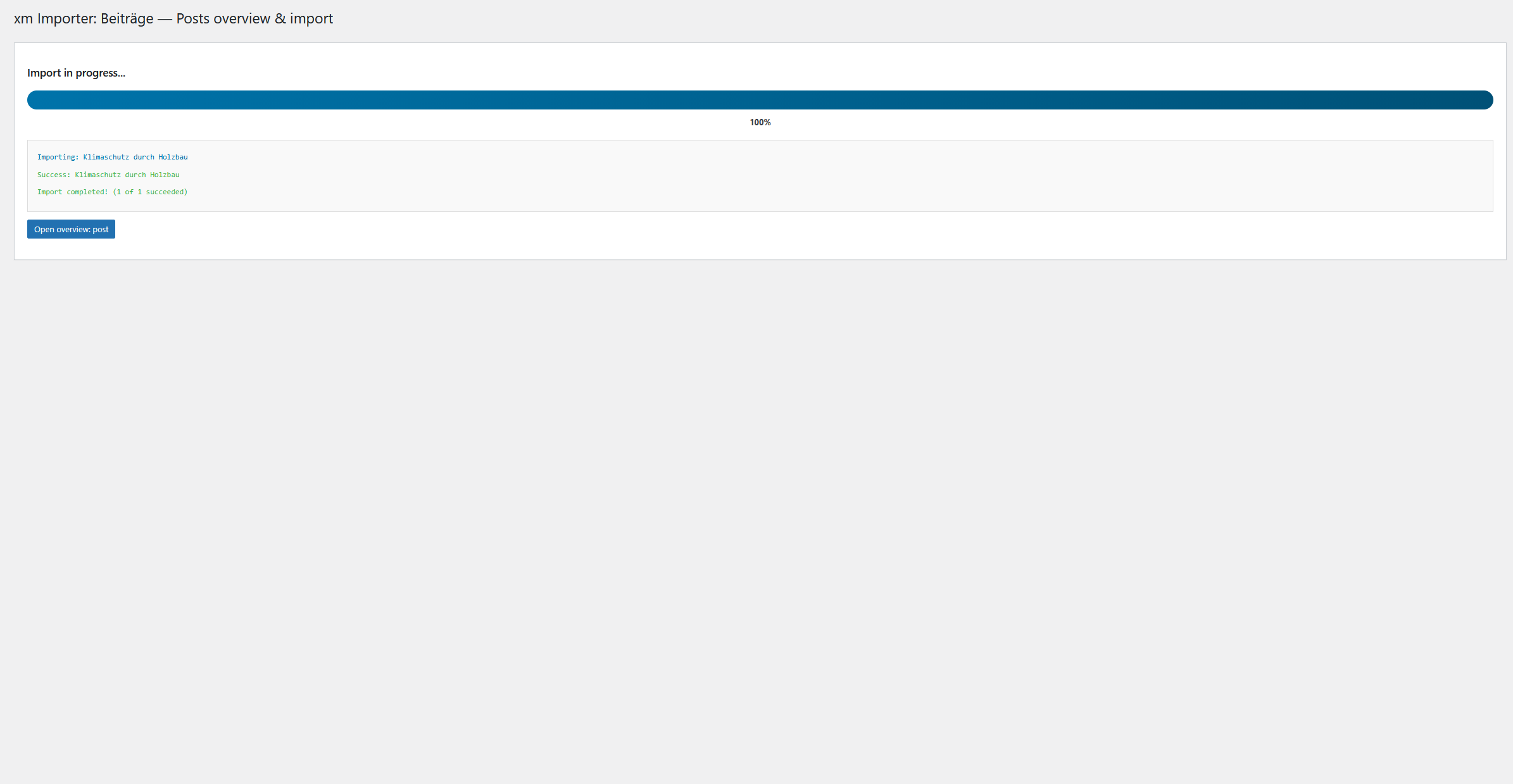16. Posts overview: In the main menu under xm Importer you should now see menu entries for the post types that you registered. (posts, pages, articles or whatever it is you entered.)