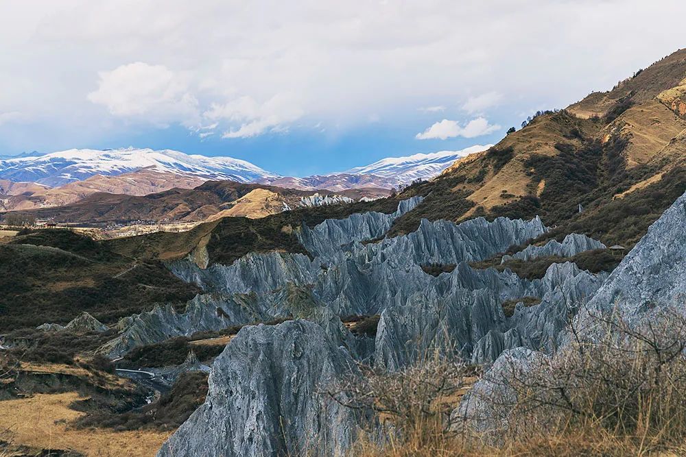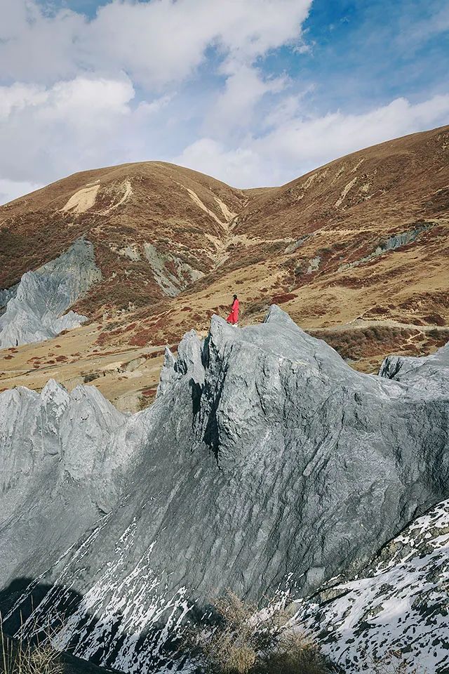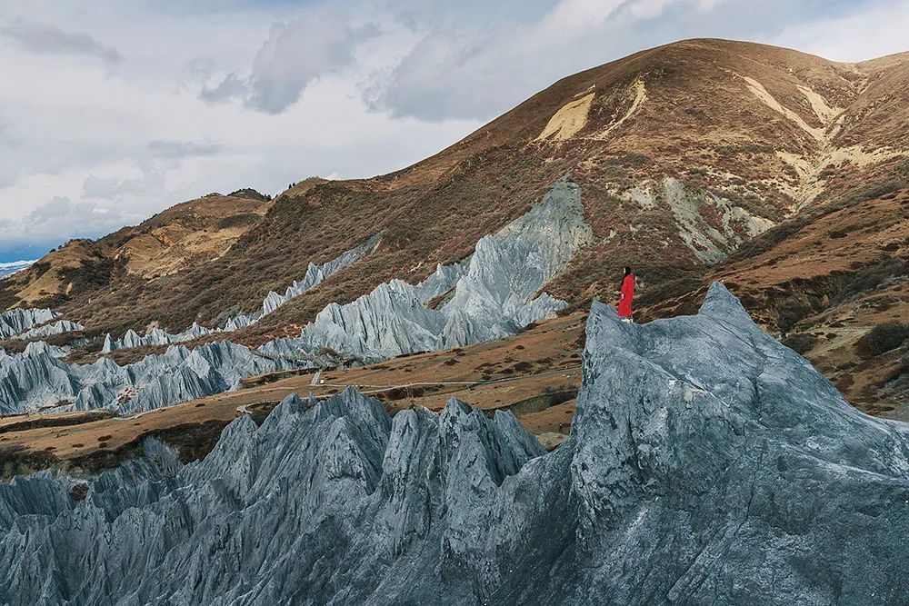 4A景区,面积不大,但是胜在类似异星异域的地质地貌。据说此处也是格萨尔王发祥地之一,“道孚八美”之一,世界地质奇观,中国唯一的高原石林。“春赏格桑夏避暑,秋观彩林冬踏雪“,景区2017年还举办过油菜花节,石林对面和背后的山地原来是种油菜的,想来花开时节,一定美翻。