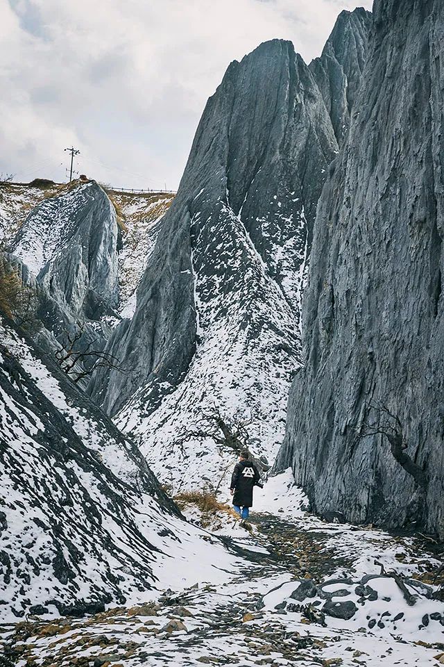 下山的时候,铁链缠到了“钢扁担”上,天寒地冻又西风萧瑟,可是苦了两位小兄弟。下车就开始飘雪,折腾老半天,好不容易才把铁链整下来了,而这鹅毛般的大雪它又戛然而止,你说郁闷不郁闷?