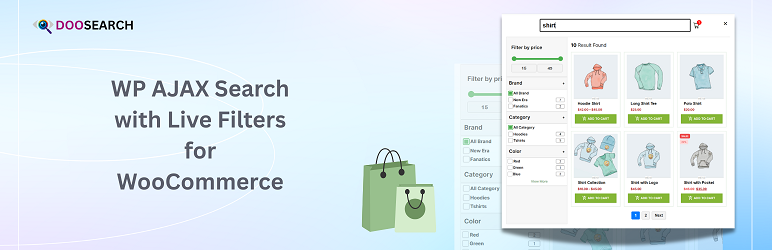 DooSearch – Ajax Search & Filters for WooCommerce (sometimes spelled “Doo Search”) is a fast, smart, and customizable product search plugin for WooCommerce. Replace the default search with an advanced AJAX-powered solution that helps customers find products instantly, with real-time results and live filters.