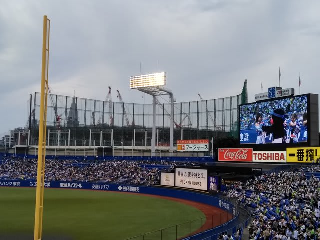 旅帰りの翌日5日に神宮球場で野球観戦。6日に梅雨入りするというので、前夜観戦を決行。
