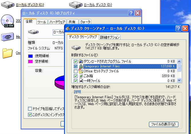 動作が重くなったら、不必要なファイル等を削除します。次のように「クリーン・アップ」すると動作が軽くなります。お試しを!