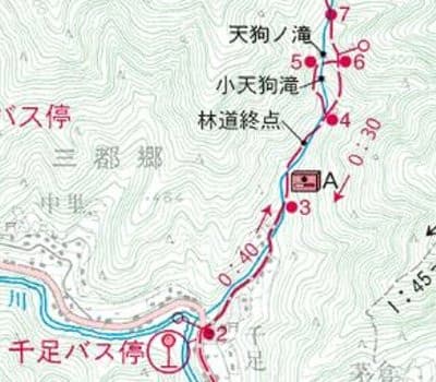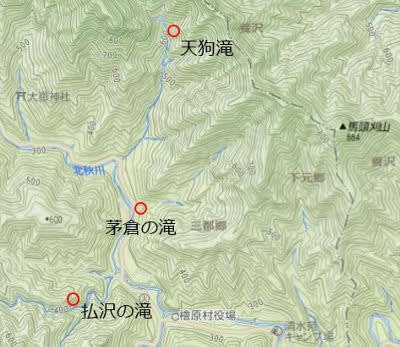 天狗滝 ⇒ 茅倉の滝 ⇒ 払沢の滝へ行く行程を予定。
