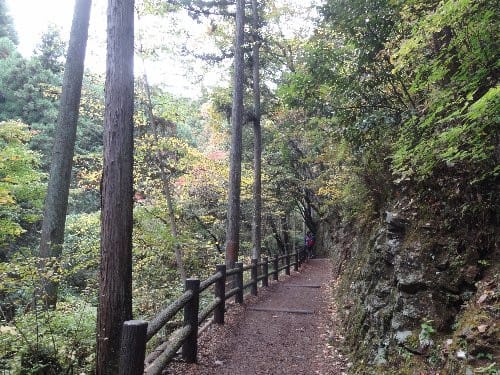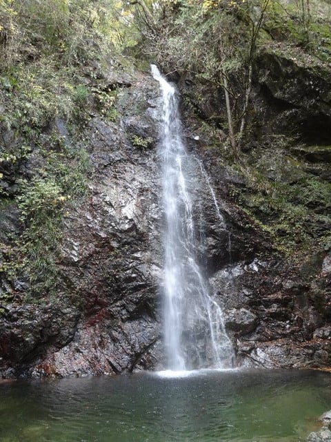 バスが走る通りから林道に入り、山の中の滝を目指す。
