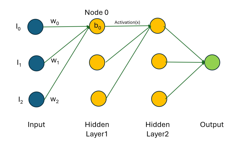 In this and the previous post we are talking about neural networks, what do matrix operations have to with that? In the previous post we described how the output of a node in an MLP, say Node 0:
