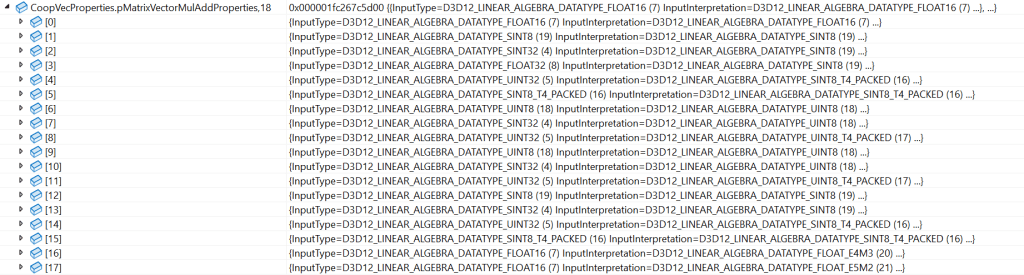 UINT MatrixVectorMulAddPropCount = CoopVecProperties.MatrixVectorMulAddPropCount;