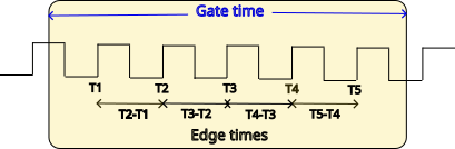 An alternative method for measuring frequency is to measure the times between the rising or falling edges, producing values that are the reciprocal of the frequency. This is particularly useful when dealing with slow signals, or if you want to implement a method to eliminate ‘rogue’ pulses, since you get one measurement for each cycle of the input signal, so could reject pulses that are outside the expected frequency range.