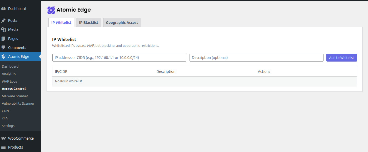 Atomic Edge Security connects your WordPress site to the Atomic Edge WAF/CDN service, providing enterprise-grade security protection without the complexity.