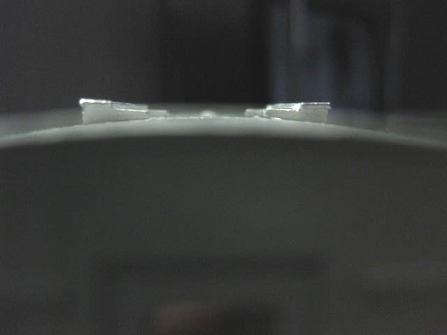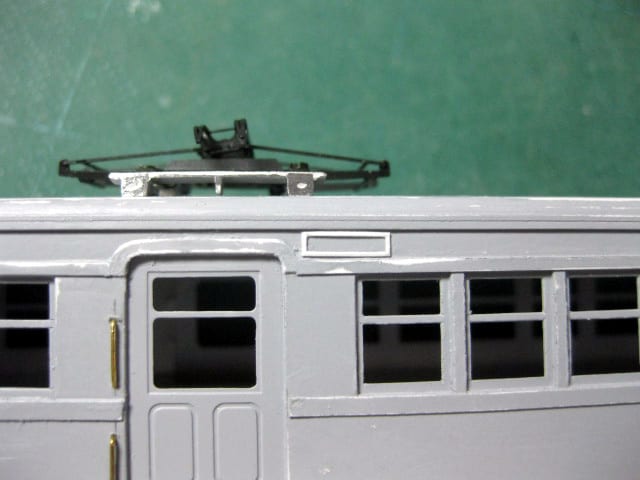 パンタ台を兼ねたランボード(エコー:No.613)は、低屋根のモハ71にそのまま付けると斜めになってしまうので、台座の厚い側を削って屋根カーブに合わせます。左が削る前、右が削った後なんですが、違いわかります??