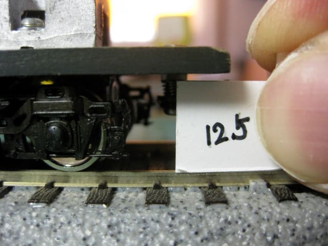ところでモハ71の車高疑惑の件。測ったところ約1mm高いことが判明しました。ボルスター部はセンターピンのスリーブパイプが3次元的に首を振るように上側からも削り込んであるため、さらに1mmも削ったら床が抜けてしまいます。芯皿を薄いものに交換しますかね。。