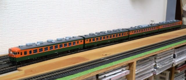 辰野・下諏訪向き制御車のクハ165-10。製品オリジナルの冷改車仕様としたため無加工ですが、クーラー、ベンチレーターなどは他車も含めて「ライトゴーストグレイ」で塗装しました。やや青みが強いですがこれは個人の趣味です。