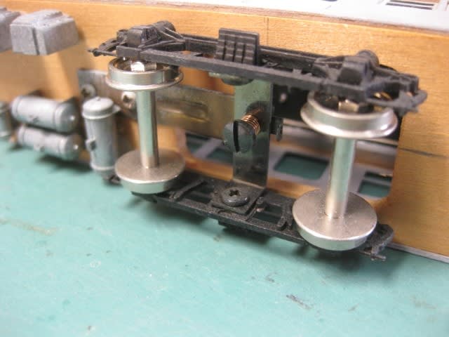 いちおう電装準備車ということで穴開きの床板に日光のDT12が取り付けてあります。確認していないけどまず軸受メタルなしの旧製品のはず。