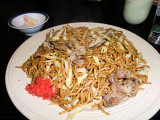 一見したところ普通の焼きそばですが、豚肉を煮込んだしょうゆと