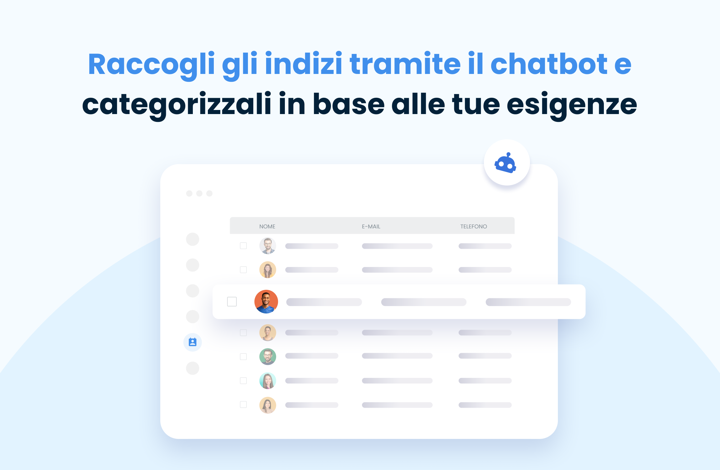 Generazione di lead – Raccogli automaticamente contatti attraverso il chatbot e classificali in base alle tue esigenze.