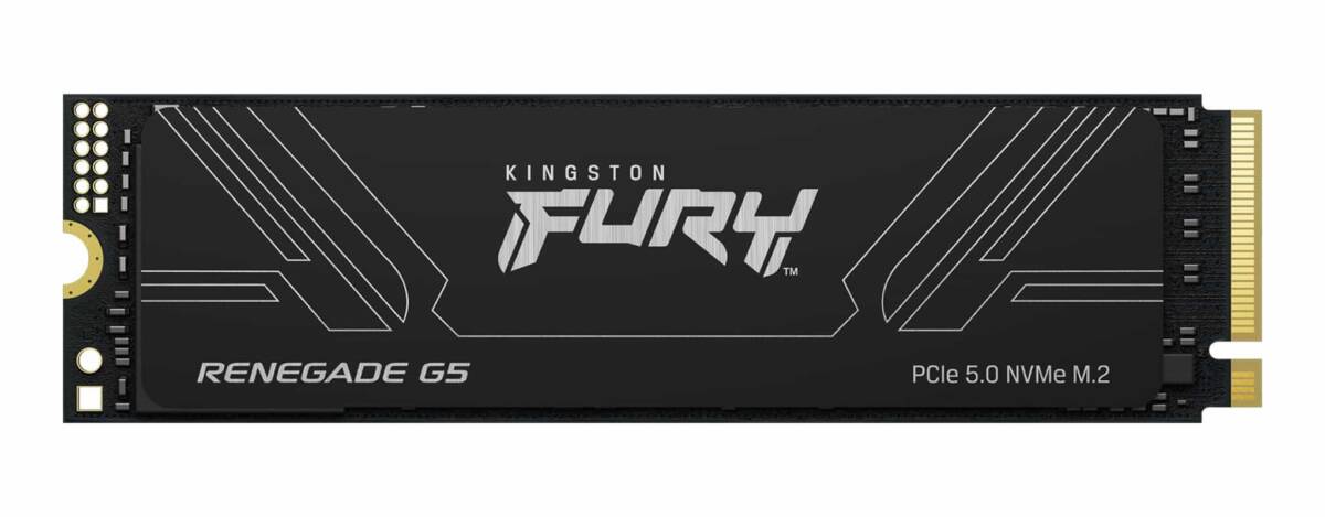 Kingston FURY Renegade G5 — де-юре геймерський, але де-факто професійний твердотілий накопичувач PCIe Gen 5 для користувачів кріейторських програм, які активно кешуються. Побудований на флеш-пам’яті 3D TLC з ресурсом перезапису цілий петабайт на кожен терабайт об’єму диска. Має дванадцяти шаровий текстоліт для покращення якості сигналу та незалежний перетворювач напруги для стабільного живлення. Контролер Silicon Motion SM2508 виготовлений за 6-нанометровим техпроцесом, завдяки чому холодніший, ніж конкуруючі SSD на базі Phison E26.