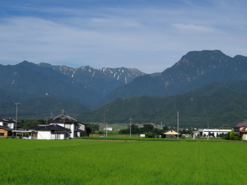 豊科駅を過ぎ、穂高駅付近からの「常念岳」