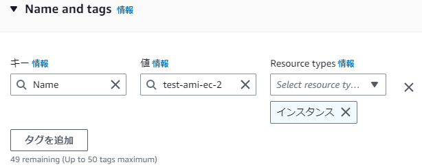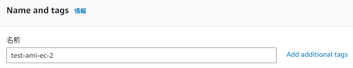 2.タグを追加する箇所です。名前を入力し右にある「さらにタグを追加(Add additional tags)」のリンクをクリックします。