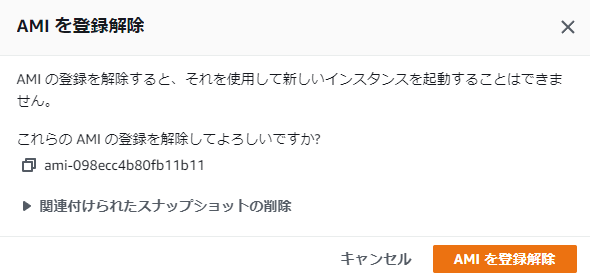 4.登録解除のメッセージが表示されます。「AMIを登録解除」をクリックします。