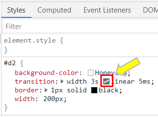 1.デベロッパーツールのElements→Stylesのtransition:の横にあるアイコンをクリックします。