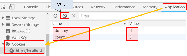上の図の「dummy」と「count」はクッキーの名前で、「d」と「3」はクッキーの値です。