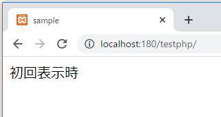 最初の表示時の判定はfalseになり、画面に初回表示時と表示されます。