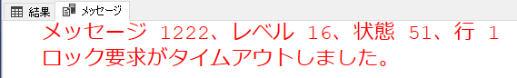 WITH(UPDLOCK,ROWLOCK)でロックを掛けた状態に対して、別のトランザクションでWITH(UPDLOCK,ROWLOCK)にNOWAITをつけて実行した場合は以下のエラーを返します。