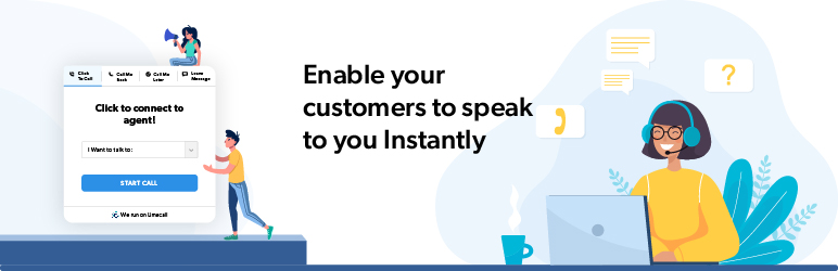 – Provides click2call funtionality (no need of phone number, connects from one browser to another)