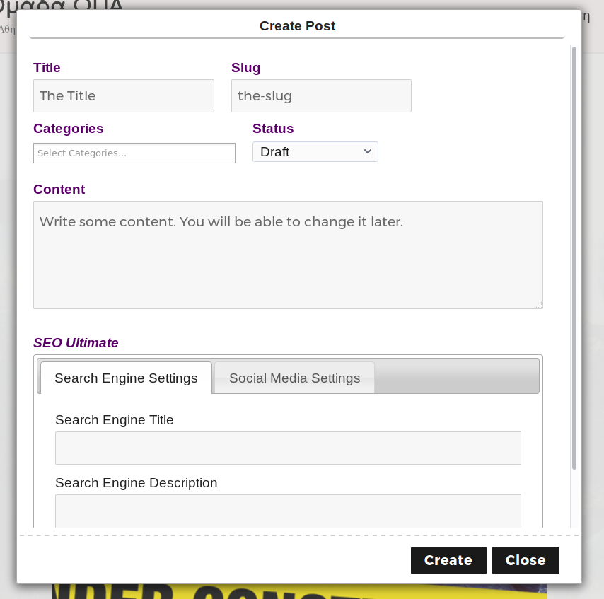- “New Post” and “New Page” menu entries that show pop up dialog to create new posts