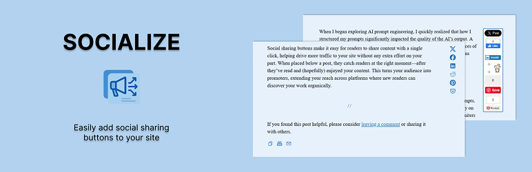 Socialize makes it easy to add relevant social sharing buttons to your posts and pages without clutter or complexity.