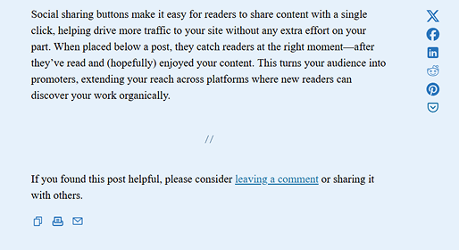 You can also display a customizable CTA box below the content. Use this space to ask readers to comment, share or take another action. You control the message and which buttons appear here, on a per-post basis.