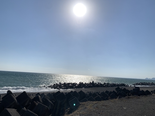 大好きな故郷の海。この日は風が強かった。