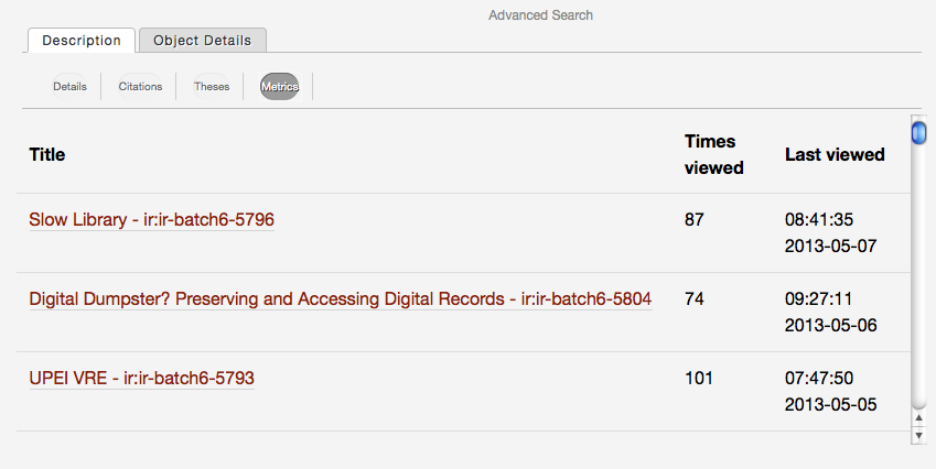 Navigating directly to the record will show a user how many times an article has been downloaded, and when it was last downloaded (See Figure Twenty-three).