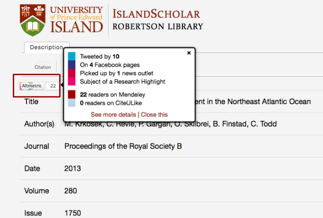 Figure 23. An Altmetrics badge reveals altmetrics to visitors