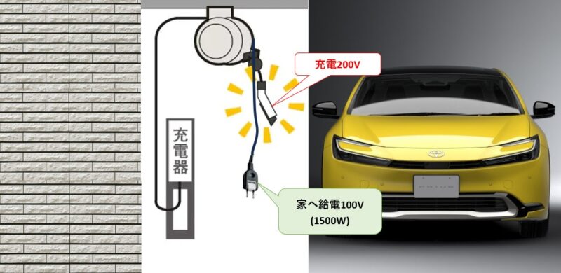 我が家は、カーポートの近くに200Vの充電ソケットがあります。